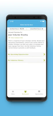 The HandsOn Connect App allows you to log into your existing account for any volunteer website powered by HandsOn Connect and search and sign-up for selected Volunteer Opportunities. You can view and manage your existing signups, add your upcoming connections to your calendar, and view your volunteer history.