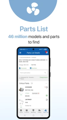 * Search for an HVAC equipment model, view the parts list and superseded parts, check availability at Homans locations (PARTS LIST)